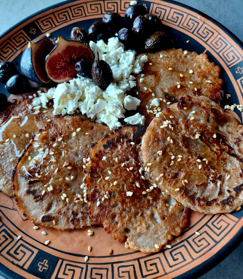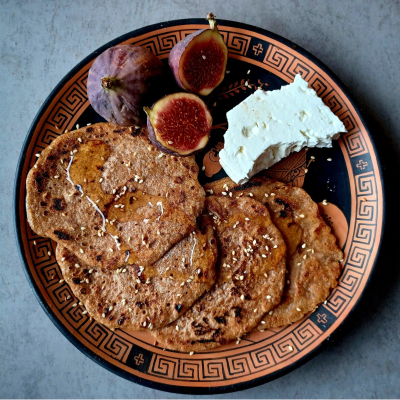 Les pancakes n'ont pas attendu la période contemporaine et les nord-américains pour être appréciés. Ces pancakes de l'Antiquité on l'avantage d'être plus fins, croustillants et avec un goût plus complexe de farine complète et d'huile d'olive.