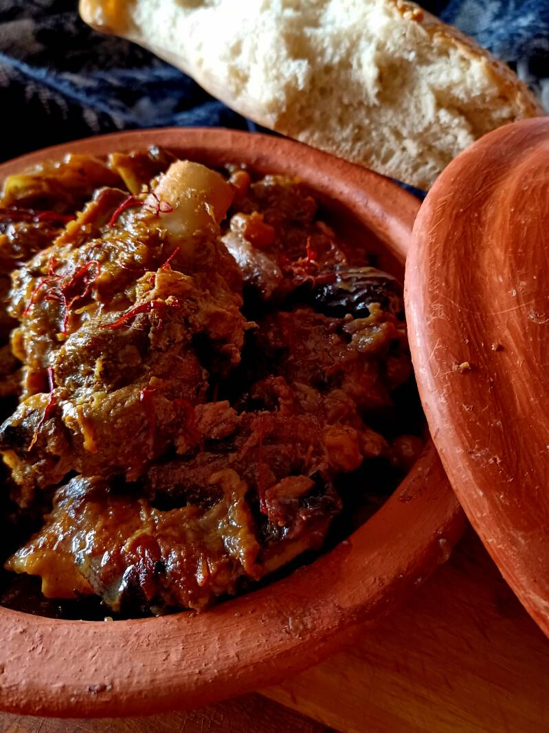 Du côté du Maghreb et jusqu'au Sud de la Turquie, on retrouve pour le coup assez souvent des plats ayant conservé leur nom et une bonne partie de leur préparation. C'est le cas du mrouzia, un tagine très associé à la cuisine marocaine. Il est pourtant répandu jusqu'en Tunisie, avec des noms parfois différents et quelques petites différences gustatives. Mais alors pourquoi le mettre dans les recettes médiévales, me direz-vous ? Premièrement, parce qu'on a des sources écrites assez claires sur la manière dont il était préparé, ce qui n'est pas si courant. Ensuite, parce que la recette en source est tout de même suffisamment différente d'un mrouzia classique pour que les deux recettes fonctionnent séparément.