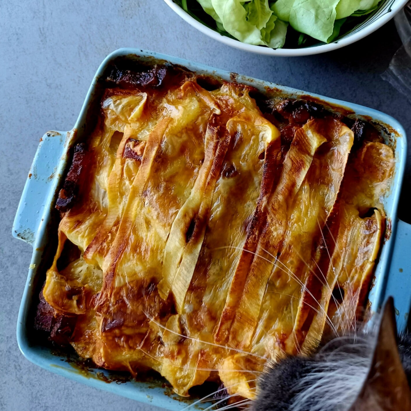 La version avec les tranches sur le dessus. Oui, j'ai découvert en prenant cette photo que notre chat aimait la tartiflette...
