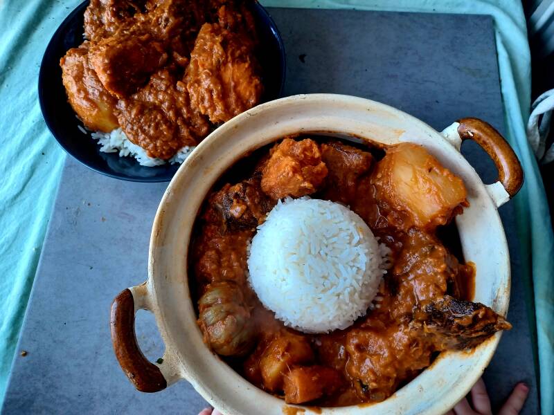 Une version de mafé au poulet qui a cuit de manière un peu trop groupée...