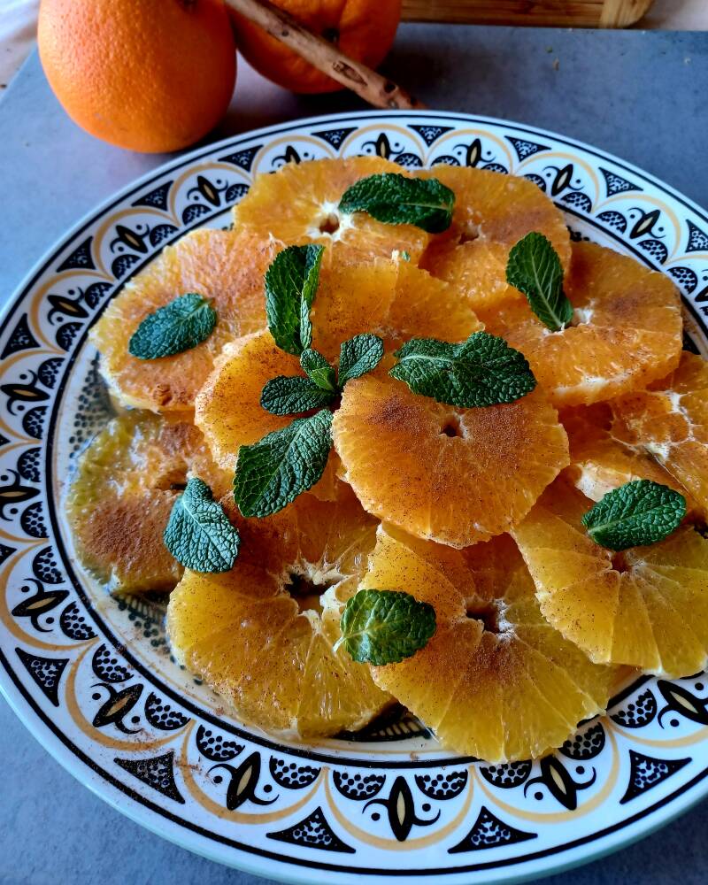 Les versions sont parfois sucrées, comme cette version marocaine très simple, quelques fois avec en plus de la grenade, mais parfois un peu plus complexes avec du salé comme des olives, de l'huile d'olive, de l'huile d'argan, des oignons crus voir, pour la Sicile en tout cas, du fenouil.